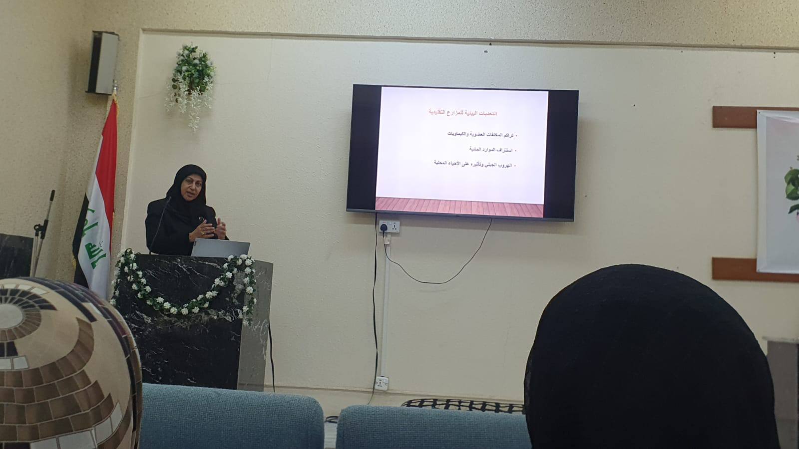 تضمنت الدورة التي حاضرت فيها الدكتورة عرفات رجب احمد من مركز علوم البحار بجامعة البصرة عدة محاور منها الإدارة الرشيدة للمياه و إدارة الأعلاف والتغذية و الوقاية من الأمراض و حماية النظم البيئية والتنوع الحيوي و إدارة المخلفات والصرف وكفاءة استخدام الطاقة مع التعريف بتقنيات مثل أنظمة الاستزراع المائي المتكاملة (RAS)، والاستزراع المتعدد الأنواع، والاستزراع التكاملي (مثل دمج تربية الأسماك مع الزراعة).