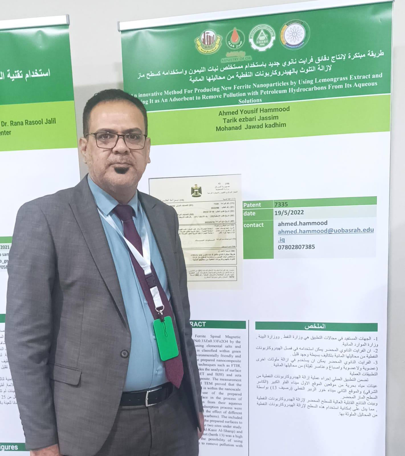 شارك تدريسي من مركز علوم البحار بجامعة البصرة الدكتور أحمد يوسف حمود، في المؤتمر الأول لاستثمار براءات الاختراع المتعلقة بالقطاع النفطي، الذي أقيم تحت شعار "براءات الاختراع... استثمار لدعم الاقتصاد".